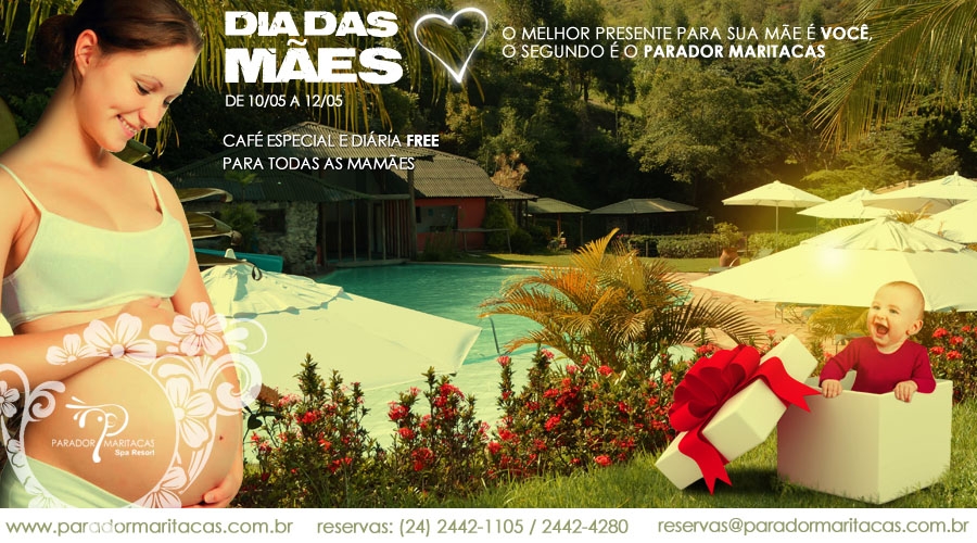 Na hospedagem entre 10 a 12 de maio de 2013, as mamães ganham uma diária free. Um presente e tanto! A data também será comemorada com um café da manhã especial. Isso sem contar atividades de lazer que estão sendo programadas com todo carinho pela recreação do Parador Maritacas para unir ainda mais mães e filhos.